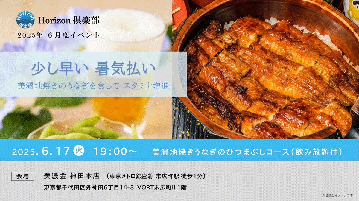 東京ではちょっと珍しい「美濃地焼きのうなぎ」をいただいてスタミナ増進!懇親を深めましょう。会場は、末広町にある「美濃金 神田本店」。